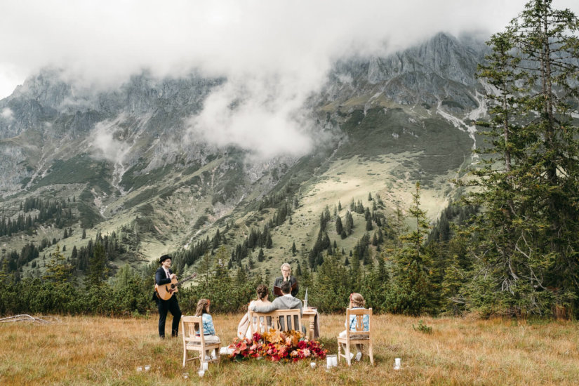 Stellt euch vor… Eine standesamtliche Trauung in den Bergen, unter freiem Himmel, in einer versteckten Bergkapelle oder einer gemütlichen Bauernstube. Danach? Zeit, viel Zeit. Tief durchatmen. Die Natur spüren, jeden Moment aufsaugen. Keine Sorgen, keine To-Do-Listen – nur das hier und jetzt.