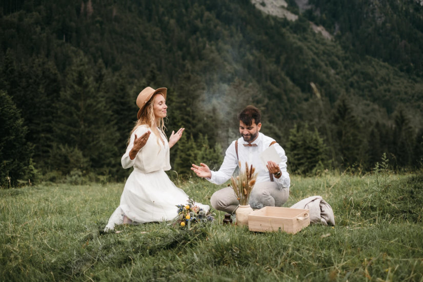 Ein befreiendes Gefühl von Abenteuer. Standesamtliche Hochzeit zu zweit unter freiem Himmel. Perfekt für aktive Paare, die sich in der Natur wie zu Hause fühlen.