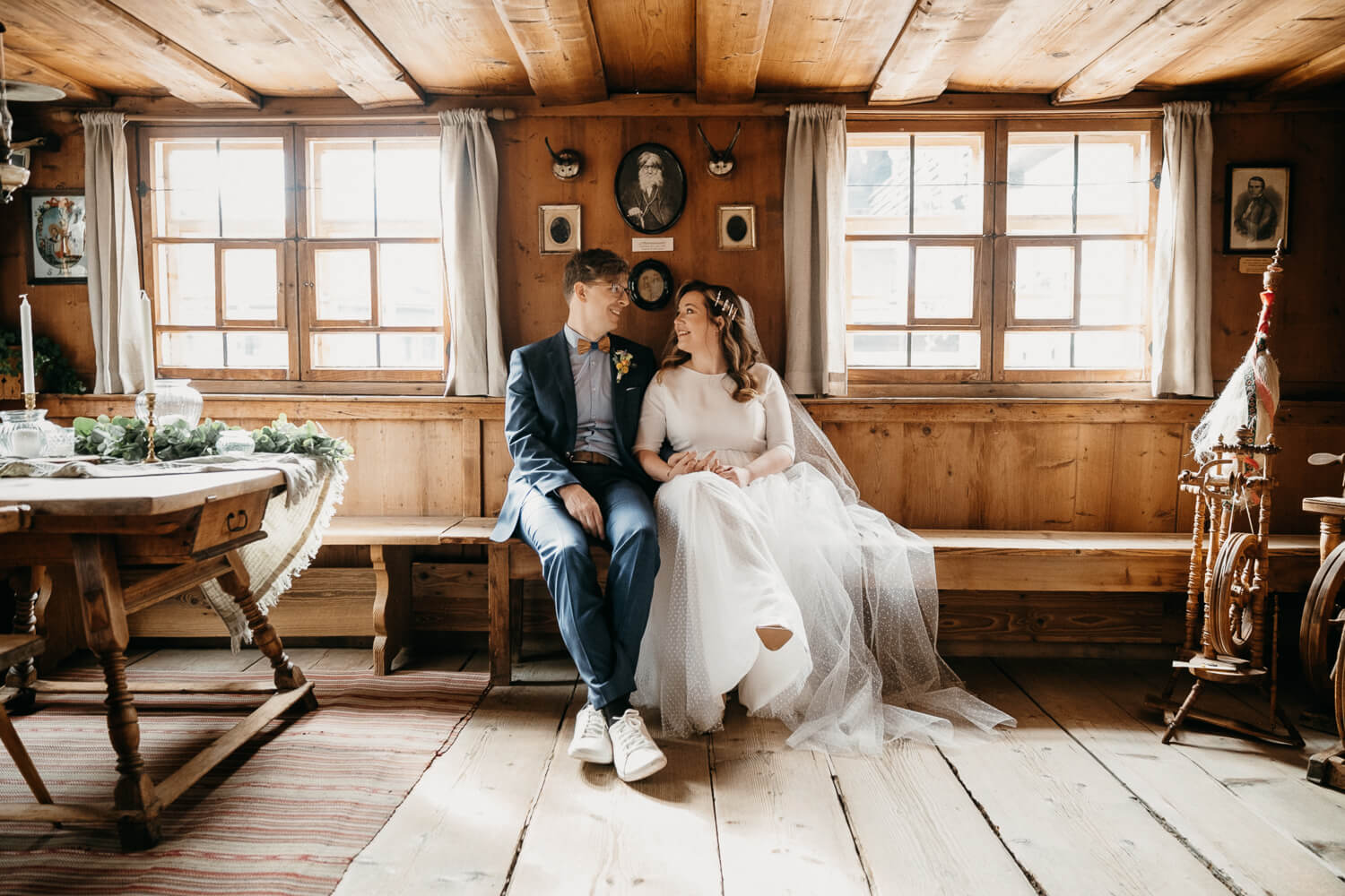 Mit Pam und Basti hatten wir einen unvergesslichen Tag in den Bergen. Bereits bei der Planung war uns klar, das wird ein ganz besonderes Erlebnis für uns alle. Das Getting Ready fand in einem wunderschönen Bergchalet statt, wo wir später auch das Picknick für die beiden eingedeckt haben. In der Nacht hat es bereits in den Bergen angefangen zu schneien, dadurch war die Stimmung in der Früh im Dorf echt was Besonderes.